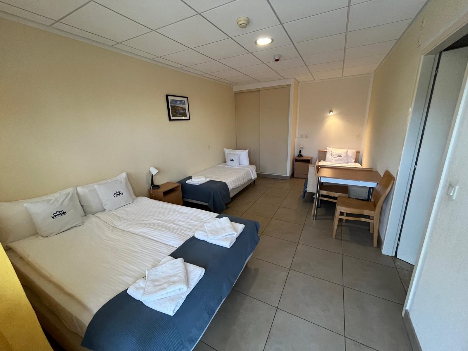 Przestronny i wygodny pokój dla czterech osób, wyposażony w jedno łóżko małżeńskie oraz dwa łóżka pojedyncze. Idealny dla rodziny z dziećmi lub grupy przyjaciół. W pokoju znajduje się prywatna łazienka (prysznic i toaleta) oraz piękny widok na Pireneje lub park przy naszym domu. Komfort, funkcjonalność i przyjazna atmosfera w otoczeniu natury.
